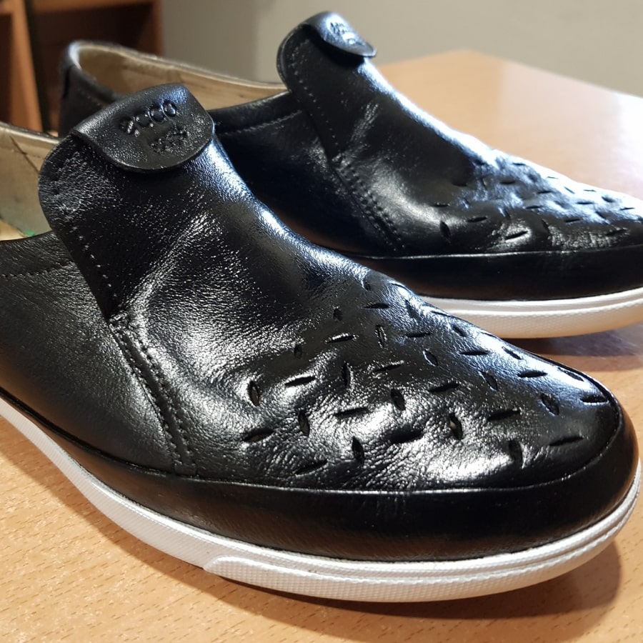 Zmiana koloru z jasnego zielonego na czarny, malowanie podeszw na biało.